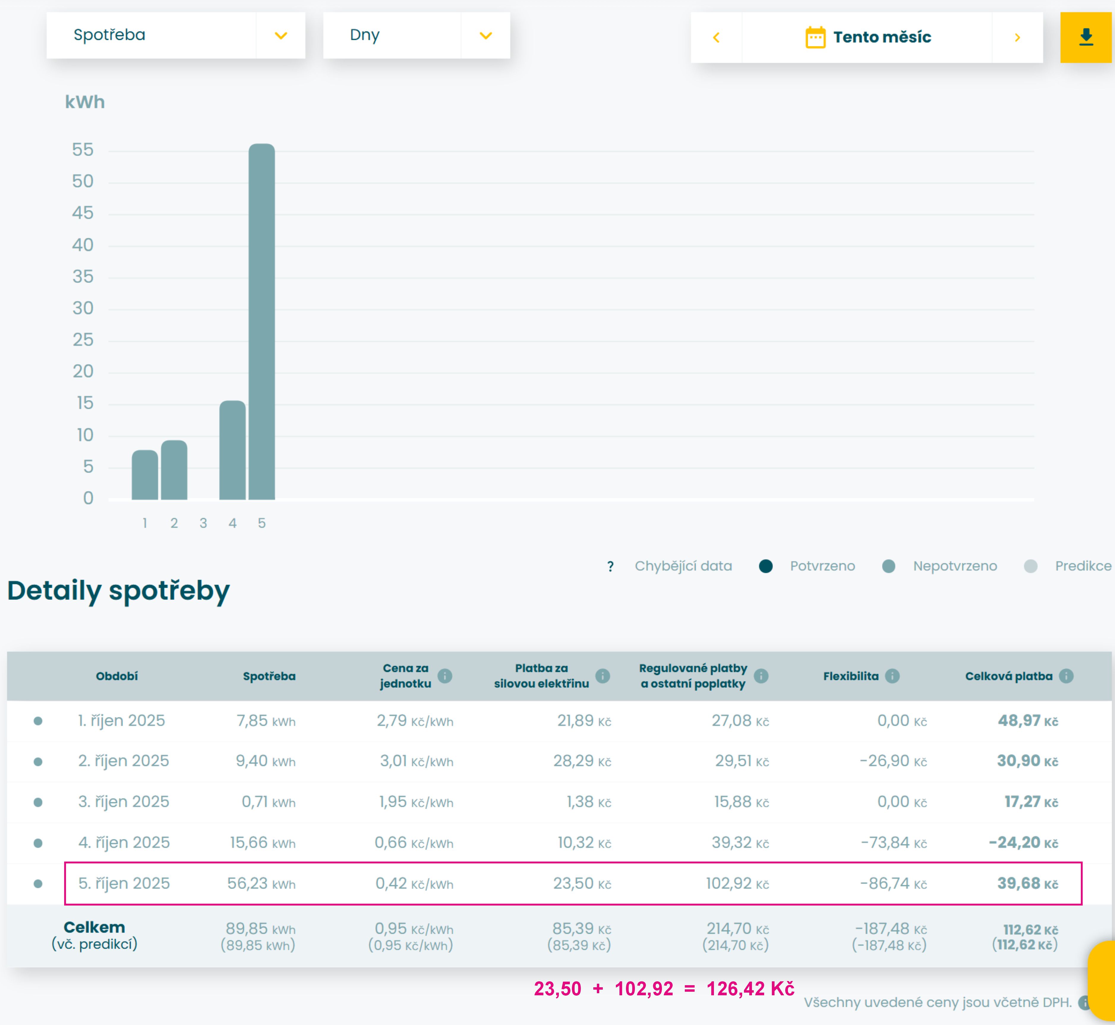 Tzn. kdybychom se vydali tou jedinou cestou, že se budeme snažit párovat čas odběru s časem VT/NT, nikdy to nebude sedět oproti tomu co je na faktuře, protože distribuce to takhle nepočítá, jede si to skrze vlastní signály viz výše, které nedorazí přesně na začátku a konci daného okna VT nebo NT.