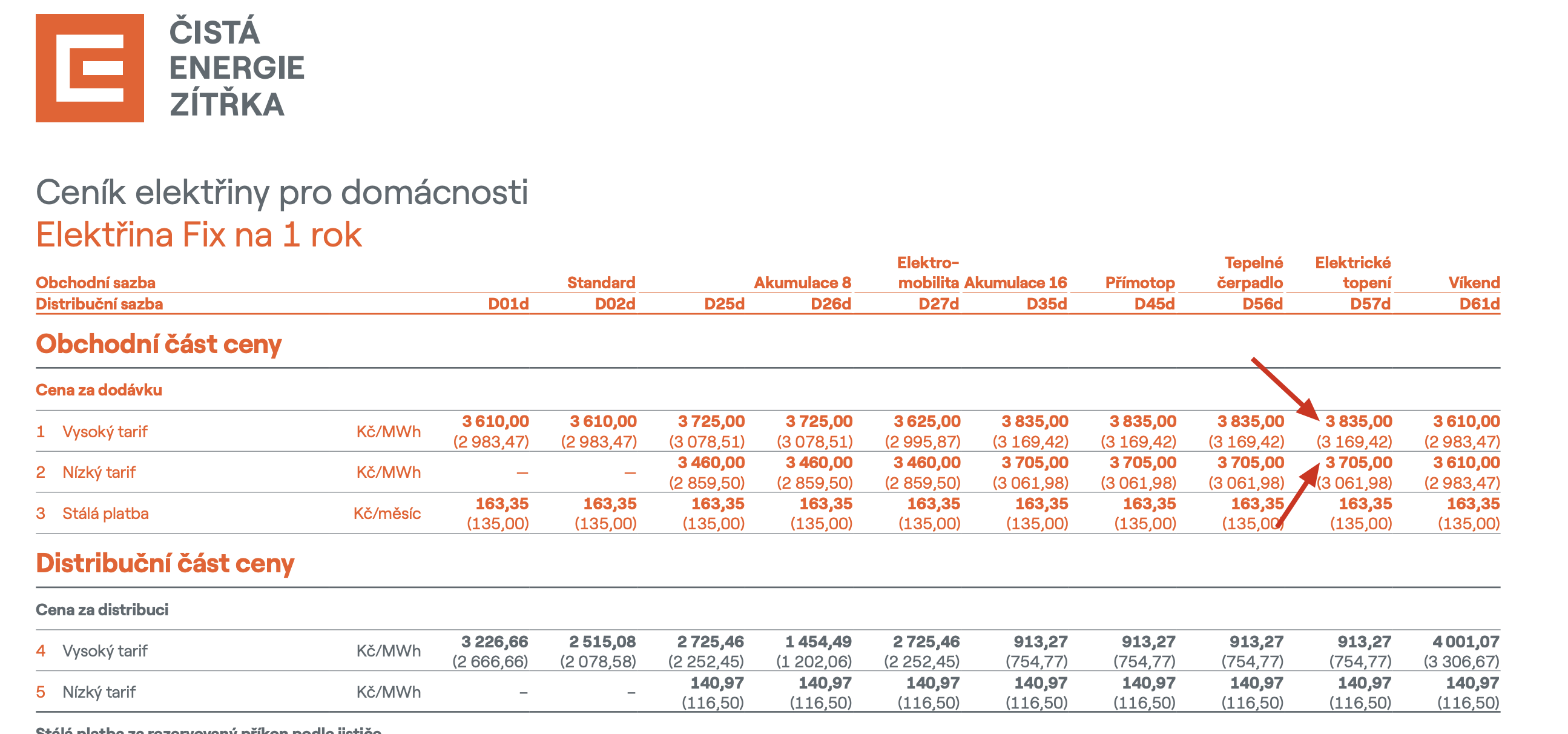 Když pak chci znát cenu včetně všeho, vezmu tu celkovou platbu a vydělím spotřebou - toto se ale dá srovnat jen s fakturou od ČEZu za nějaký kompletní rok - to z ceníku vykoukat nejde.