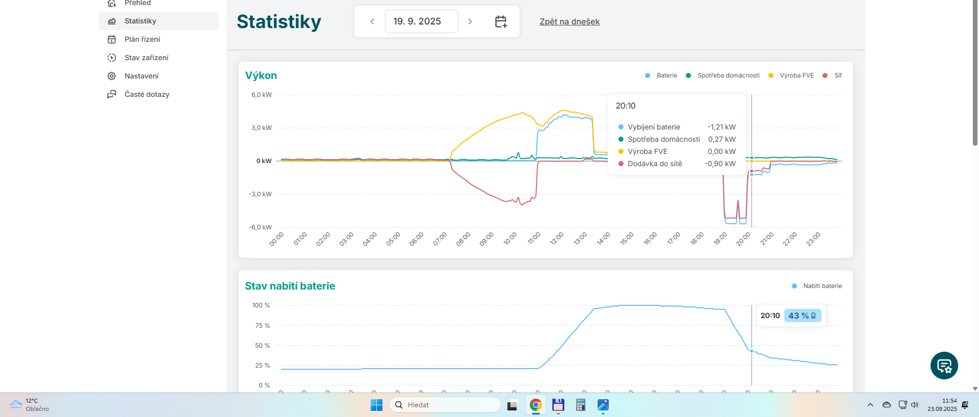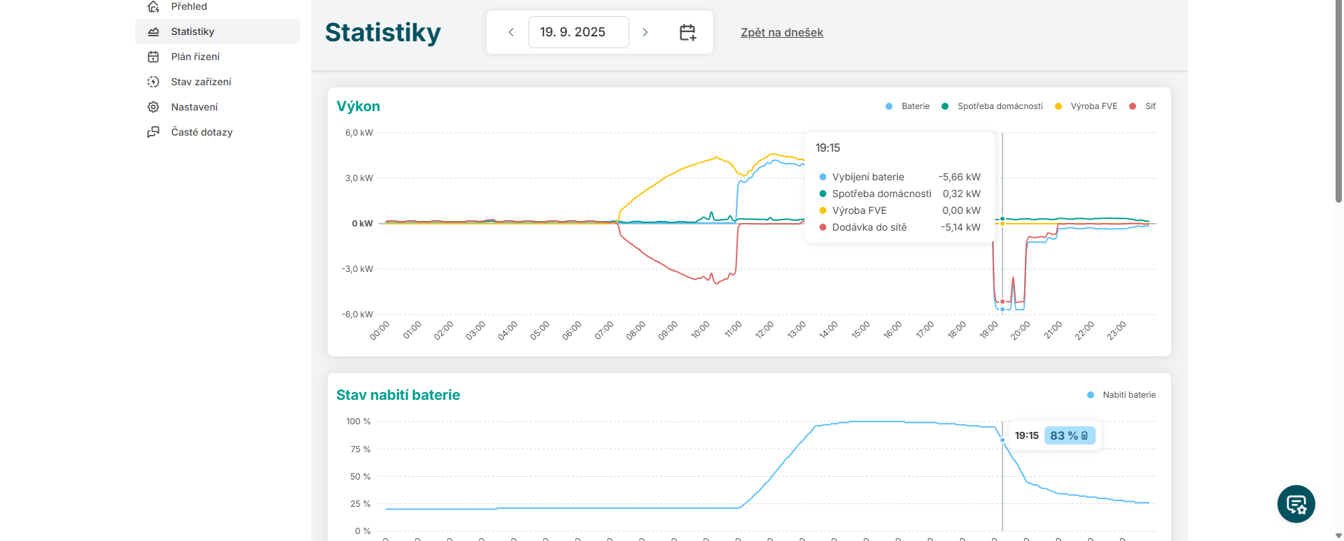 Normalne se mi vybiji baterka 6.8kW. Dnes se mi vybijela jenom 5.8