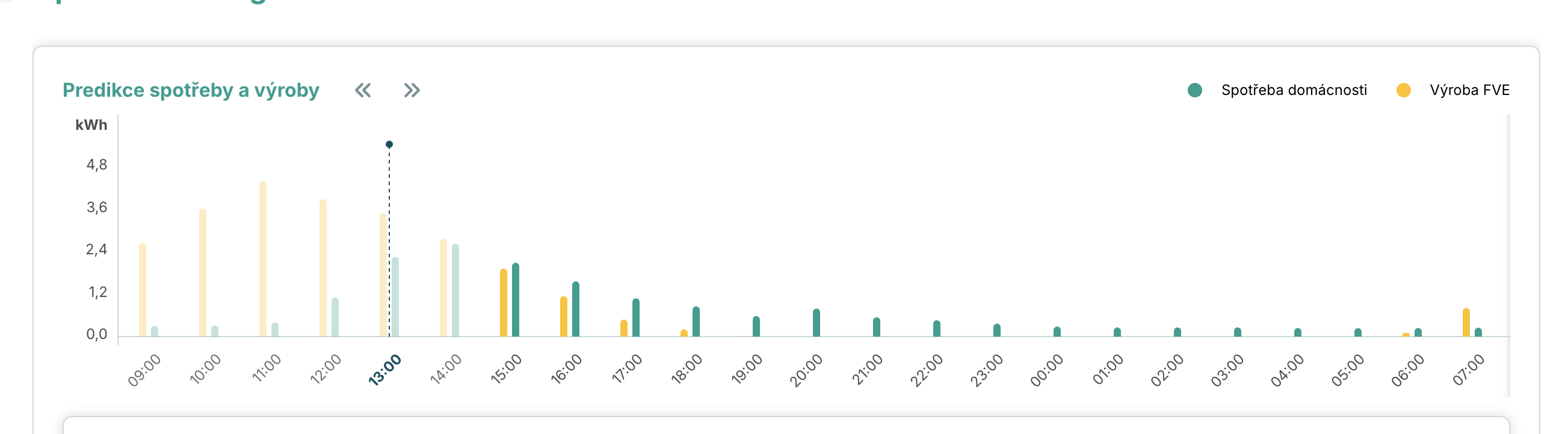 Vše po 13:00 predikuje spotřebu téměř stejnou nebo větší než výrobu - jen v těch 13:00 je predikce výroby větší ale ne o tolik, aby to zaplnilo celou baterii - proto to “donabití” toho zbytku.