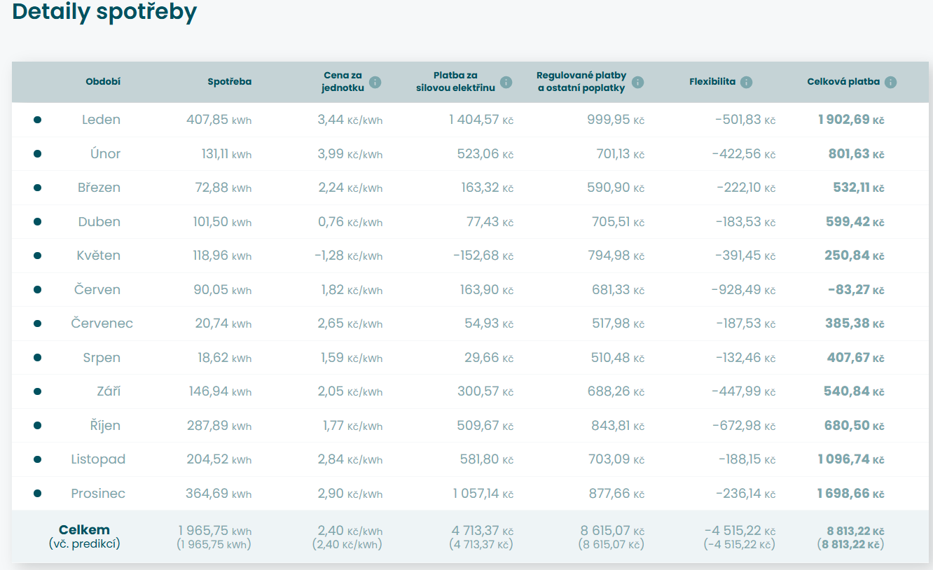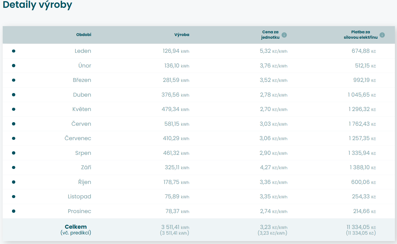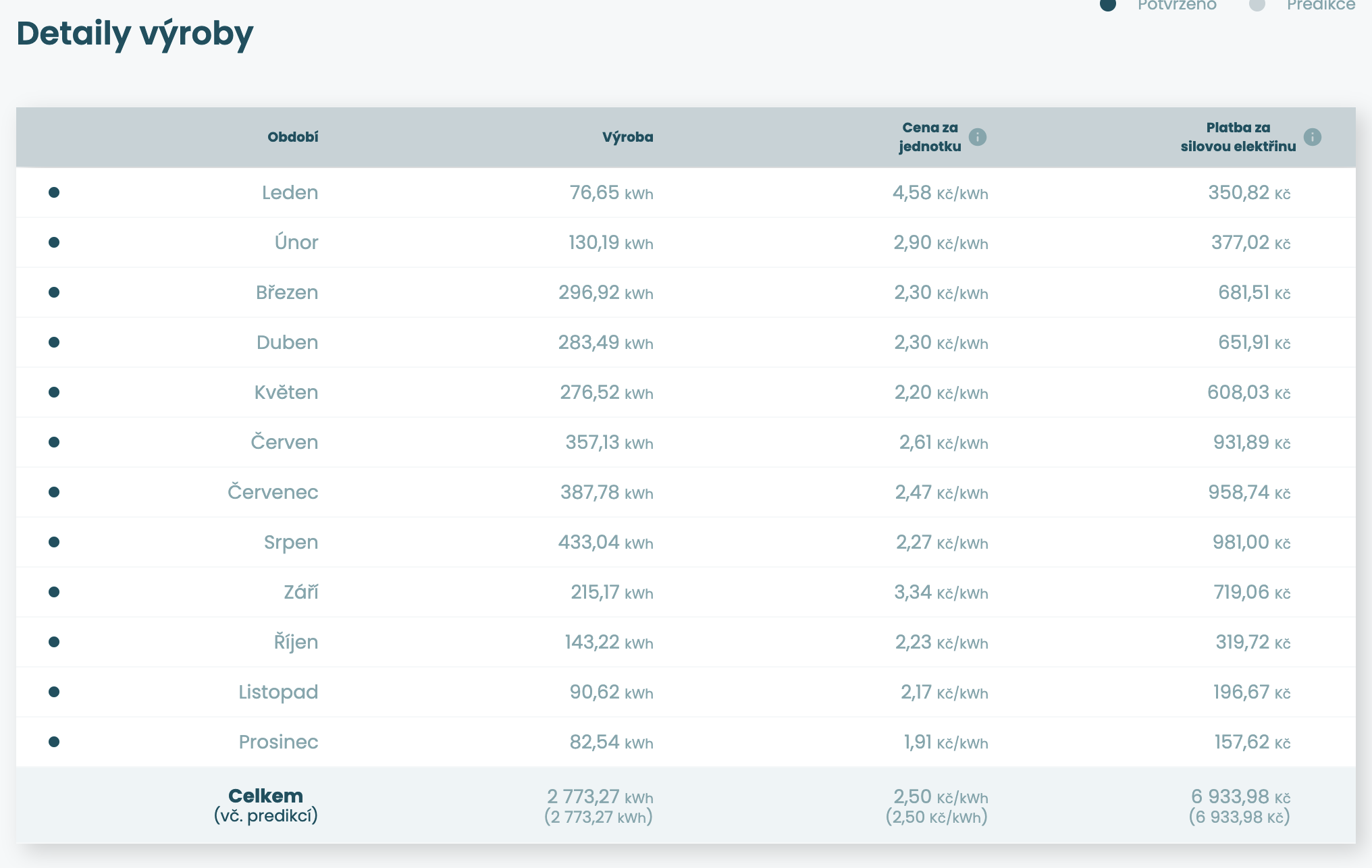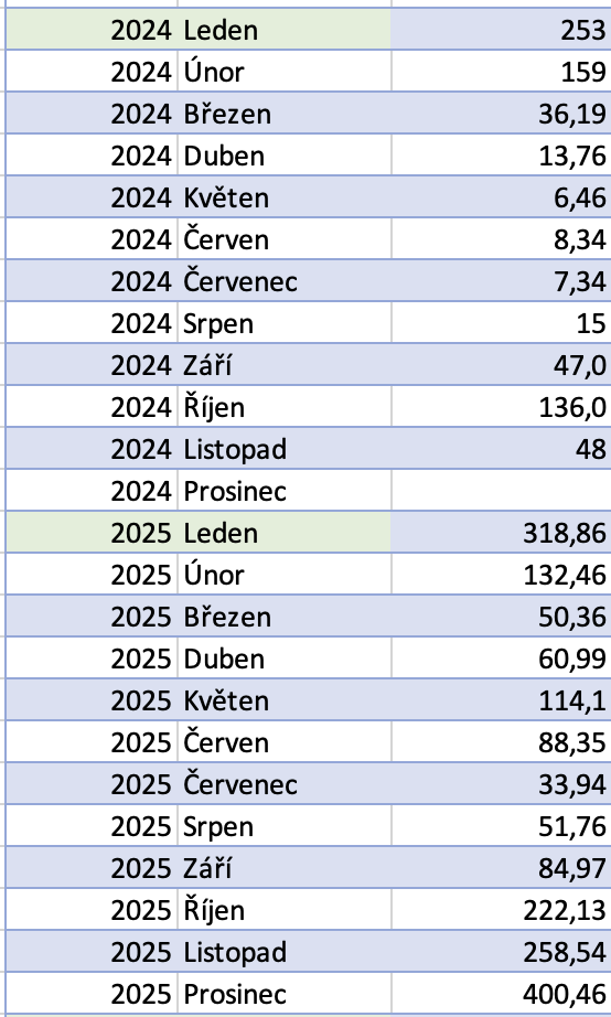 V roce 2024 jsem byl -12tis spotřeba a +7,5tis výroba. Ale beru, že trochu jinak svítilo a ceny za výkup na fixu byly jiné. Každopádně jsem očekával, že teď na tom budu o chlup lépe, ale vlastně je to ±stejné.