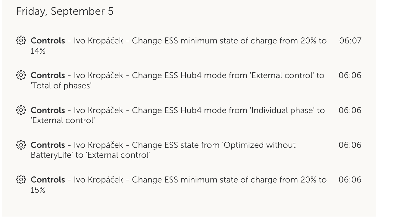 Děkuji za snahu, ale přijde mi, že to funguje stále stejně. Baterie byla stále nad min SoC 10 %, přesto mám od půlnoci do 14:00 odběr ze sítě 2,3 kWh, do půlnoci to bude přes 3 kWh. Přitom zcela zbytečně.